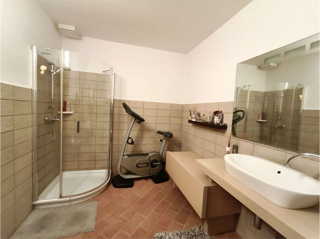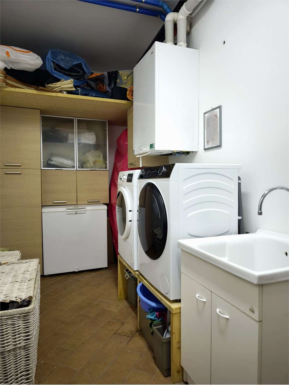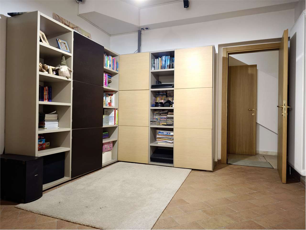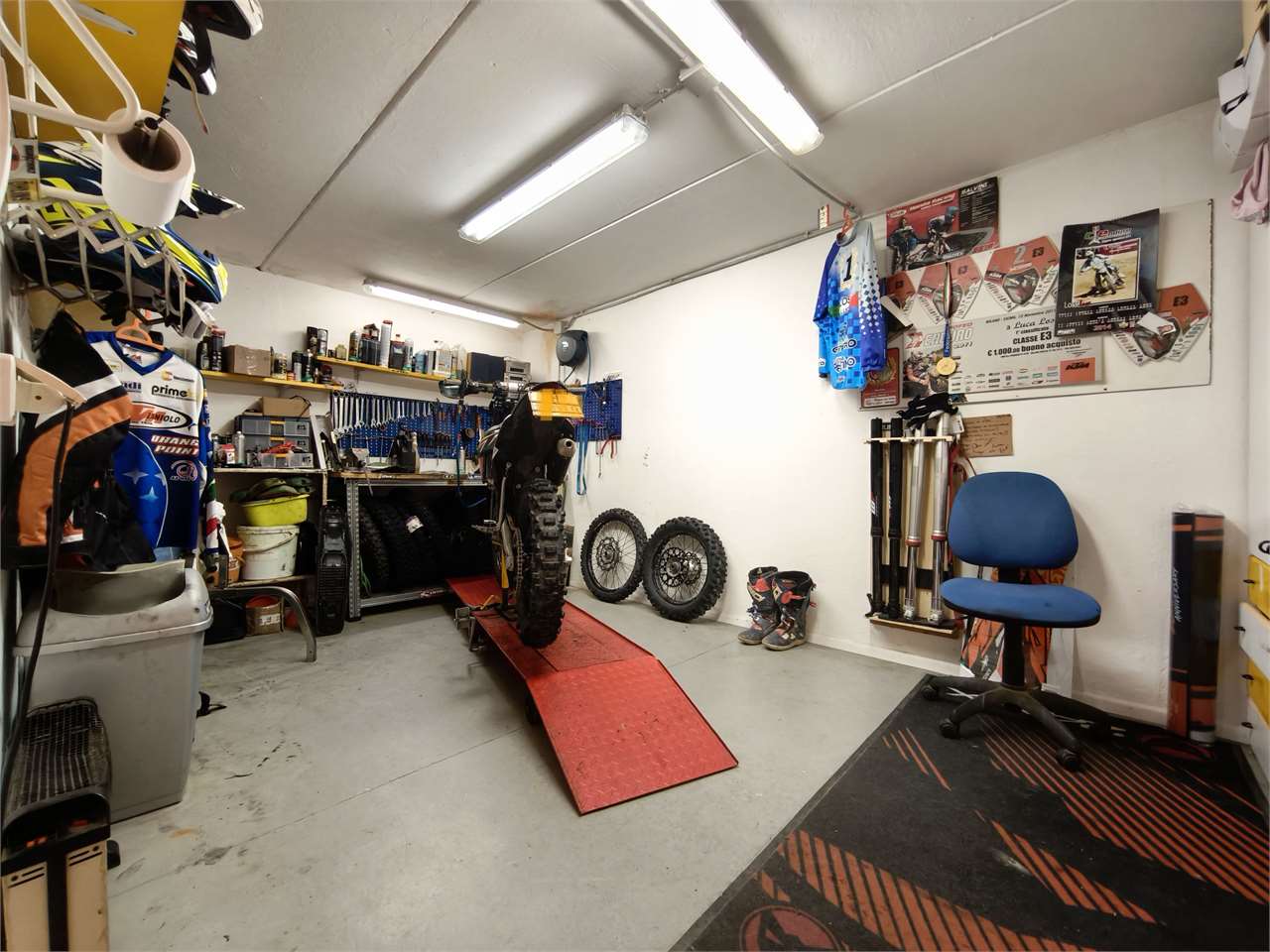 Il primo piano ospita la zona notte, composta da una camera matrimoniale, due camere singole, un secondo bagno finestrato, uno studio e un balcone con vista sul verde circostante. Al piano interrato si sviluppano gli ambienti accessori: una spaziosa taverna con bagno, una comoda lavanderia, la centrale termica, la cantina e un garage doppio accessoriato di officina. Tutti i locali interrati sono stati ottimizzati grazie alla presenza dell’intercapedine, che ne migliora l’isolamento e la vivibilità.