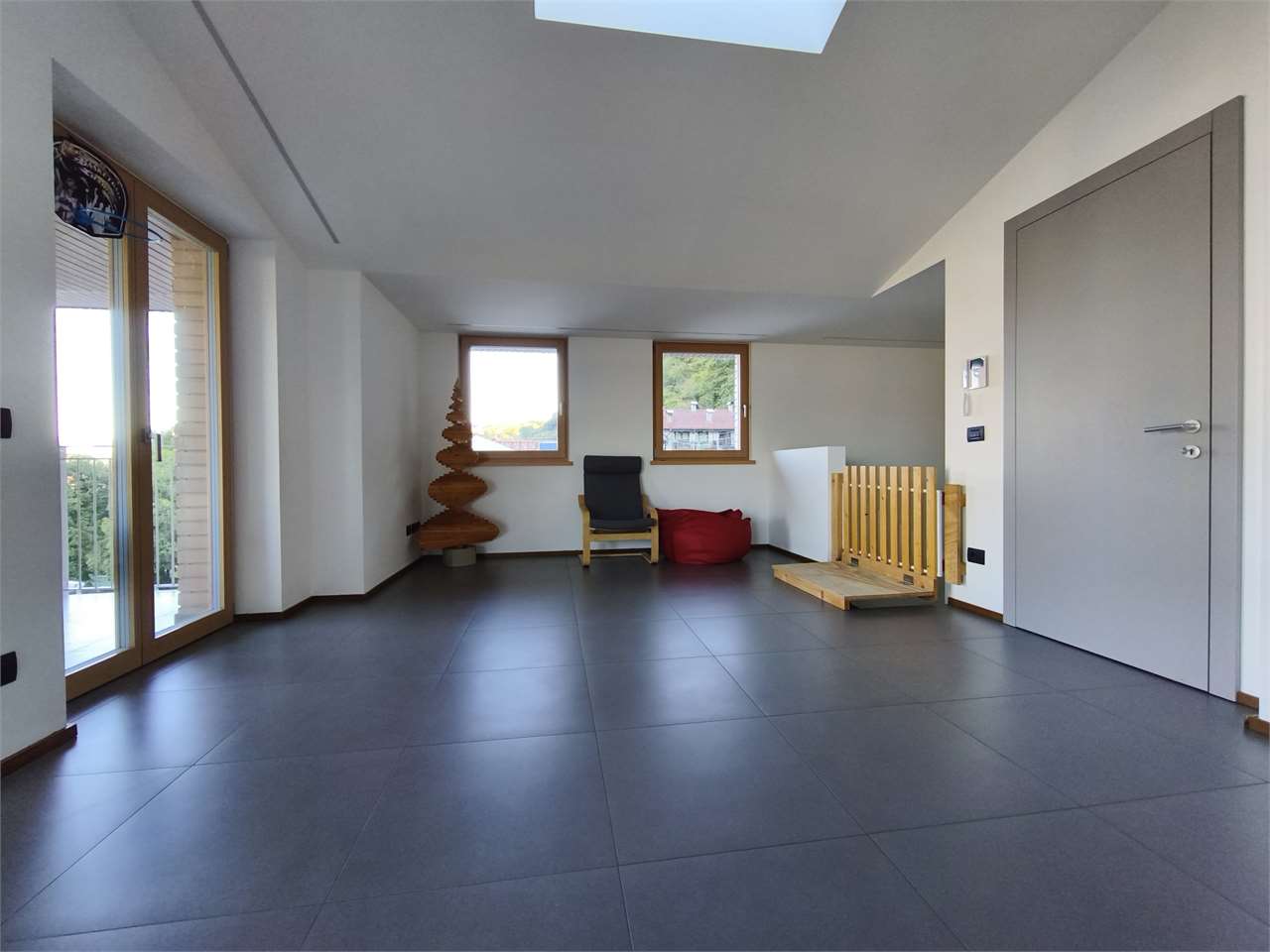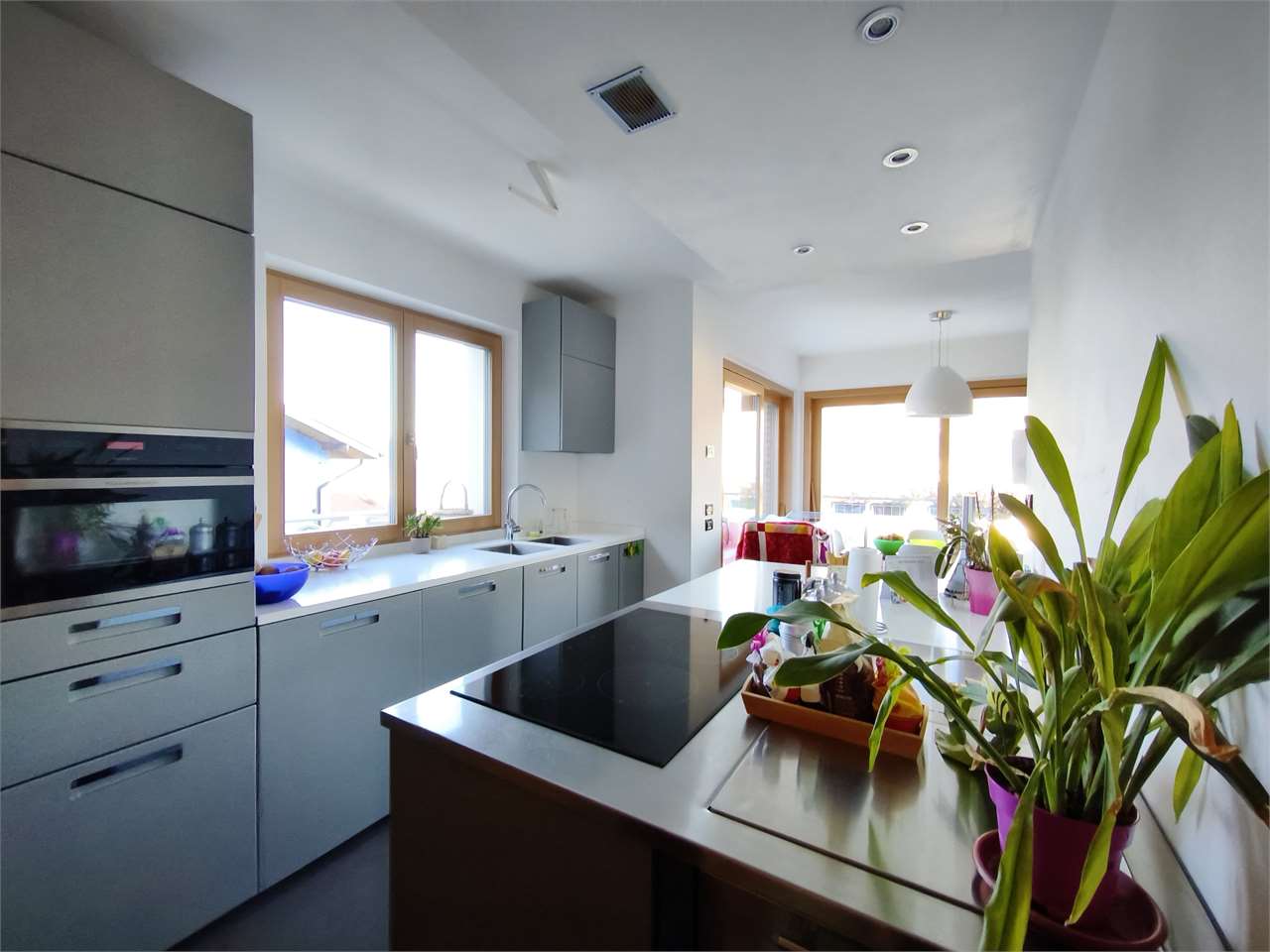 La zona giorno completamente esposta a ovest regala ambienti luminosi e una vista panoramica sul Bondone e sulla Paganella.
