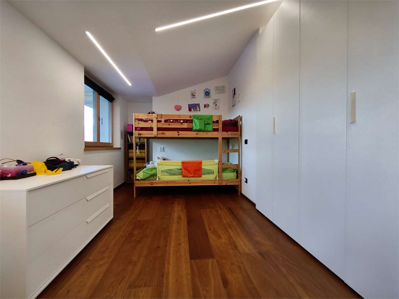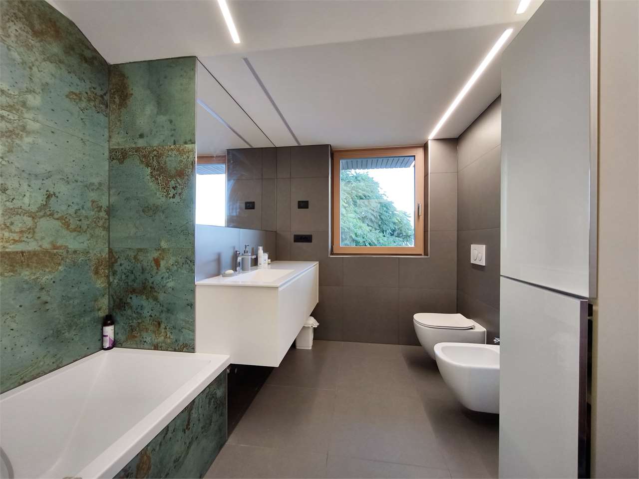 In posizione collinare, soleggiata e tranquilla, appena fuori dall’abitato di Vigo Meano ma a pochi passi da tutti i servizi, proponiamo ampio appartamento di 250 mq disposto su due livelli in villa bifamiliare di recente costruzione.