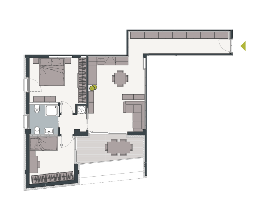 A pochi passi dal centro in condominio di recente costruzione, appartamento a secondo piano con ascensore, composto da ingresso nella zona giorno con terrazzino, camera matrimoniale, camera singola, bagno finestrato, disimpegno con zona lavanderia. Riscaldamento e raffrescamento a pavimento, edificio classe A+.