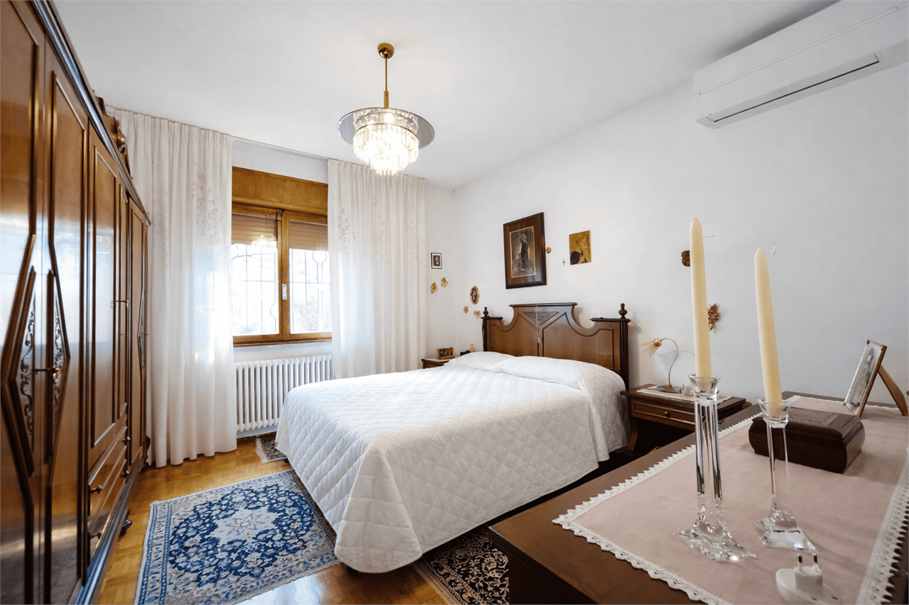 Il piano primo ospita l’appartamento principale: un luminoso soggiorno esposto a sud-ovest con terrazza e una magnifica vista sulla città, disimpegno, cucina abitabile con accesso al giardino, due stanze, un bagno e un ripostiglio.