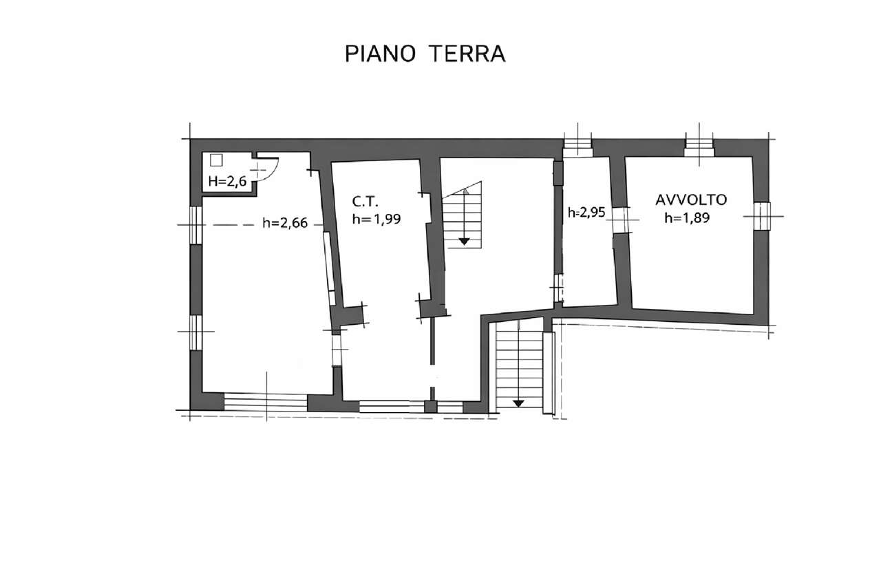 Completano la proprietà due locali ad uso cantina a piano interrato e un cortile privato di circa 220 mq.